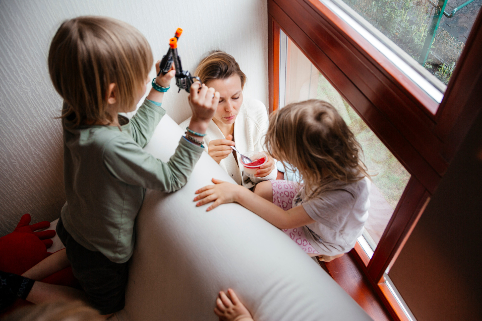 Изначально я хотела в своих фотографиях показать, как женщине удается совмещать материнство и работу. Но в попытке создать новый проект и в заботе о своих собственных детях, я поняла, что так сильно устала, что мне хочется только одного — залезть куда-то и спрятаться. И неожиданно ночью, когда я высаживала на горшок младшего, мне пришла в голову новая идея: я не могу скрыться сама, но могу помочь в этом другим! На следующий день я предложила моей подруге Наташе идею, которая очень хорошо вписалась в ее реальность.